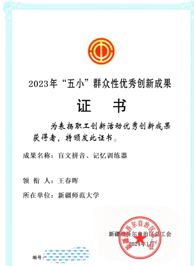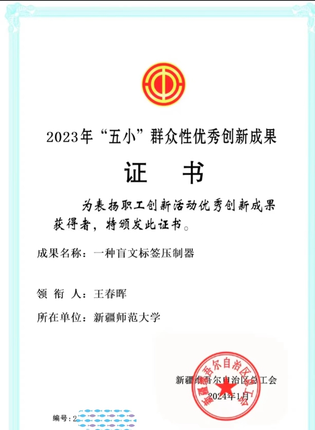 小革新、小发明、小创造、小设计、小建议“五小”群众性优秀创新成果的申报,是由学校工会积极组织,广泛动员各二级工会教师参与申报,经自治区总工会审核,玩滚官网共有四个项目荣获自治区“五小”群众性优秀创新成果奖。