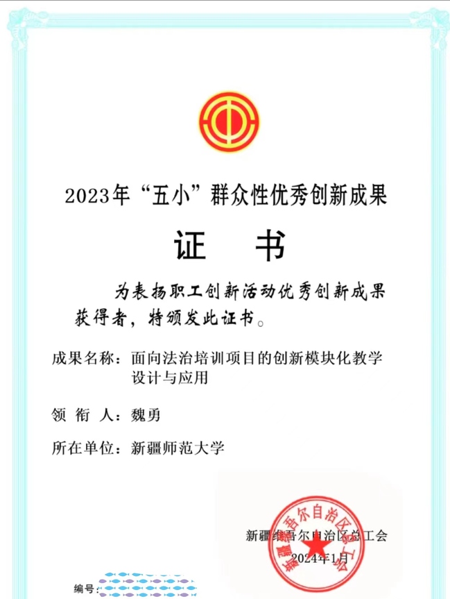 近日,自治区总工会公布了《关于通报表扬2023年职工创新活动优秀创新成果的决定》,玩滚官网马克思主义学院教师罗志佳、教育科学学院教师王春晖、政法学院教师魏勇获奖。