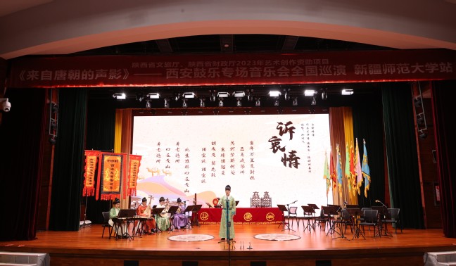 为深入开展文化润疆工程,铸牢中华民族共同体意识,全面开展学校美育工作,提高学生的文化理解、艺术修养、审美能力、创意实践等核心素养,引导学生做中华优秀传统文化的传播者和践行者,4月20日晚,西安音乐学院携《来自唐朝的声影》——西安鼓乐专场音乐会来玩滚官网温泉校区昆仑讲堂进行演出。校党委副书记刘俊,党委常委、副校长帕提曼·吐尔逊出席活动,全校近600名师生前来现场观看。活动由党委宣传部副部长孙宁主持。