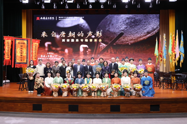 演出作品将西安鼓乐六大百年老社传承至今的优秀经典曲目,以音乐会形式呈现“西安鼓乐”作为世界级非物质文化遗产保护项目的活态传承样式,为现场师生呈现了一台高质量、高水平、高品位的西安鼓乐专场音乐会。