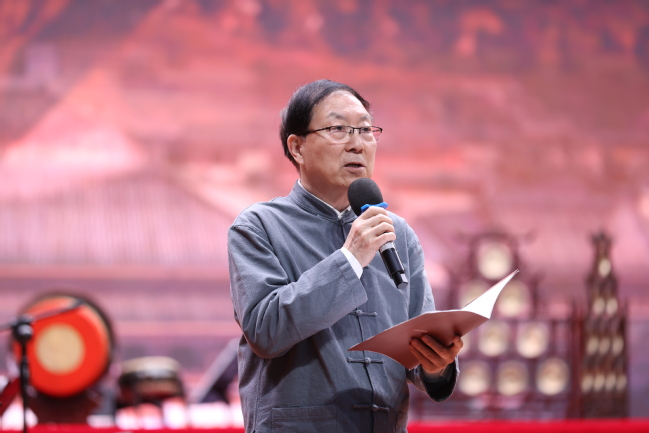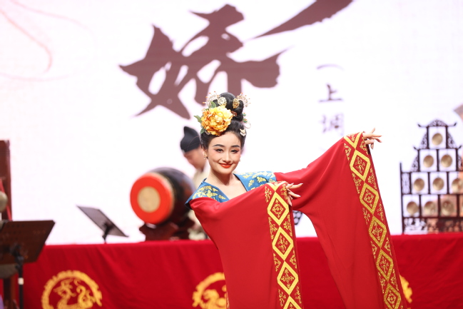 音乐会上,《来自唐朝的声影》艺术总监程天健教授介绍音乐会概况。 西安音乐学院西安鼓乐艺术团精彩演绎了旋律婉转悠长的《满园春》和《青天歌》、舞姿优美动人的《婆罗门引》和《步步娇》,筚篥独奏《雨霖铃》、清歌《鹊踏枝》《遐方怨》《诉衷情》《满庭芳》、坐乐曲联奏《将军令》《耍社火》《到春来》《霸王鞭》……乐曲风格既庄重高雅,又饱满热烈。