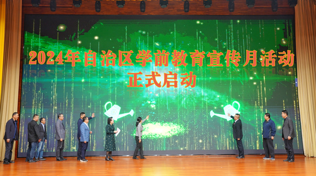 最后,与会嘉宾一同启动2024年学前教育宣传月活动。陈彤在讲话中表示我国和自治区学前教育普及普惠安全优质发展已迈入更高的发展阶段。