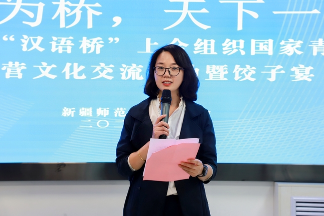 校团委书记陆娇和国际文化交流学院党委书记王守峰在活动中分别致辞,向远道而来的营员们表示热烈的欢迎,并向大家介绍饺子作为展现中华文化的重要元素,象征着团圆和幸福,希望来自不同国家的学生朋友们通过这场饺子宴活动,增进交流,共同体验中华文化的魅力。