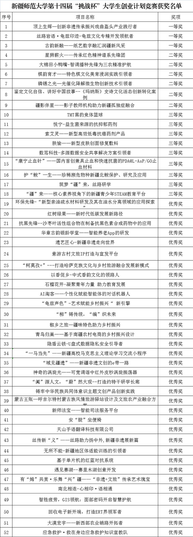获奖名单