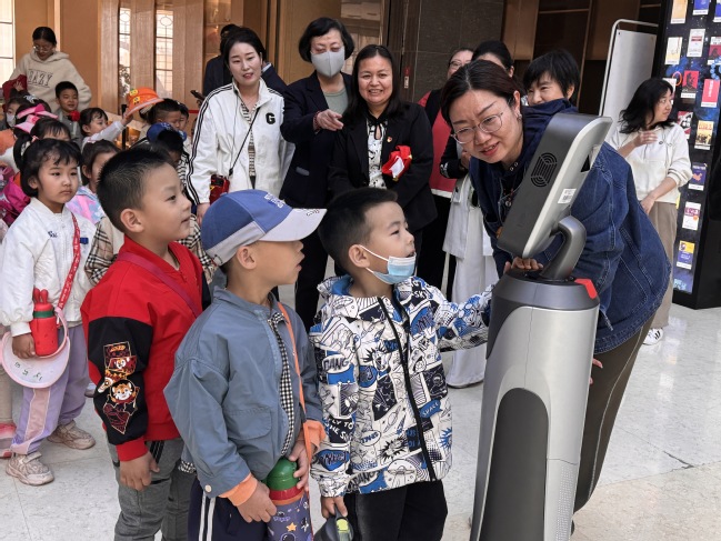 小朋友们与机器人互动