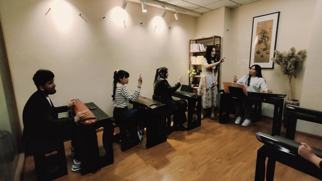 古琴又称瑶琴、玉琴,琴棋书画四艺之首,其声悠远而深沉,似幽兰在风中摇曳,诠释着中华文化的博大精深。留学生们模仿老师们学习抹、挑、勾、剔、托、擘等基本指法,悠长柔美的琴音萦绕耳边。弹指间,仿佛穿越时光,与古相通,恰似走进古代文人的精神世界,体会中华文化的博大精深。