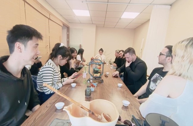 茶如人生,丰富多彩,每一杯都有不同的故事和感悟。静心品茶,便能领略到其中的美好与韵味。活动现场,茶艺师通过刮沫、搓茶、摇香、入海、蝶舞、展茗、落蝶、归一品茗八部曲泡制出香气扑鼻的茶汤,指导留学生们细细品味每一口茶的香醇与深厚。留学生们端盏浅啜,茶水在口中回甘,清香悠远,如同置身于诗画之中,让人不禁陶醉在这份唯美的品茶时光里,领略每一个步骤背后的文化韵味。