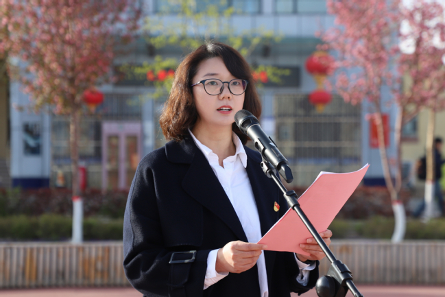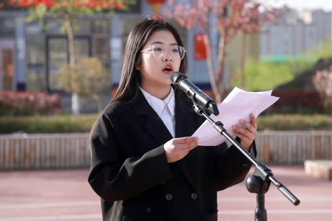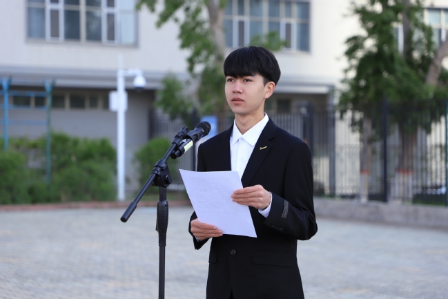 马克思主义学院思想政治教育22-5班学生丁戚和物理与电子工程学院物理学22-2班学生努尔扎提·艾斯米提拉代表入团积极分子分别作国旗下发言。他们表示,入团不仅仅是一种荣誉,更是一种责任和使命。要在今后的学习生活中坚定理想信念,勤于实践锻炼,将个人理想追求融入党和国家的事业中,让理想信念在创业奋斗中升华,让青春在创新创造中闪光。
