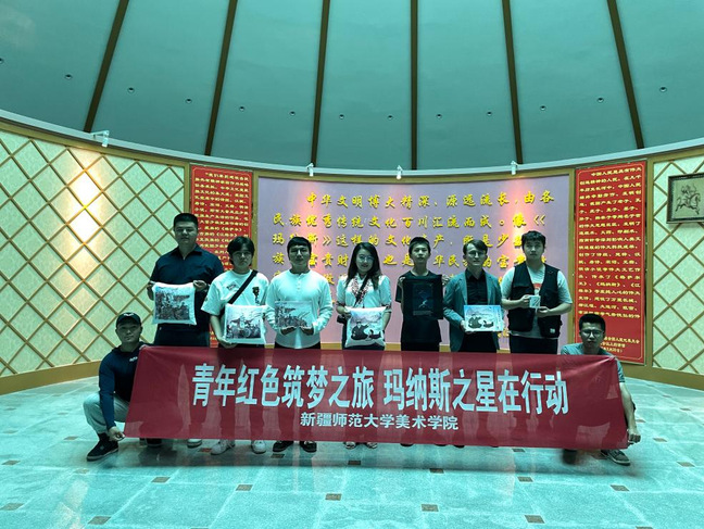 美术学院师生在《玛纳斯》史诗演唱形式、文学形式的基础上,将史诗内容视觉化,打破传统绘画模式,结合数字艺术技术,开拓了当代多种艺术表现形态,让传承千年的史诗以年轻化、国潮化、市场化、普及化的艺术形态走入大众视野。开发儿童绘本《少年英雄玛纳斯》,制作益智玩具,开发文创产品,制作推广《玛纳斯》史诗动画短视频,设计《玛纳斯》史诗人物形象,推动中华优秀传统文化创造性转化、创新性发展。同时,为克孜勒苏柯尔克孜自治州博物馆设计史诗中109名英雄人物形象,进行壁画、文化长廊等设计并已落地。项目同时获得中国日报、中国民族报、中国青年报等26家主流媒体的广泛关注,宣传视频点击量达3600万次。项目让史诗的传承和发展不仅仅局限在口口相传,还将其转化为具有价值内涵和审美品质的文化产品,将文化资源转变成实实在在的旅游经济效益。通过讲好中国故事,增强了民族凝聚力,增强了对中华民族的认同感,有形有感有效铸牢中华民族共同体意识。