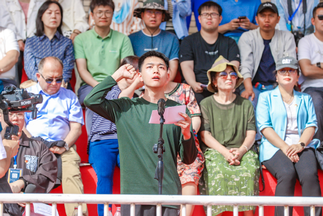 运动员代表、数学科学学院学生洪佳荣进行宣誓