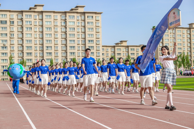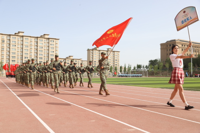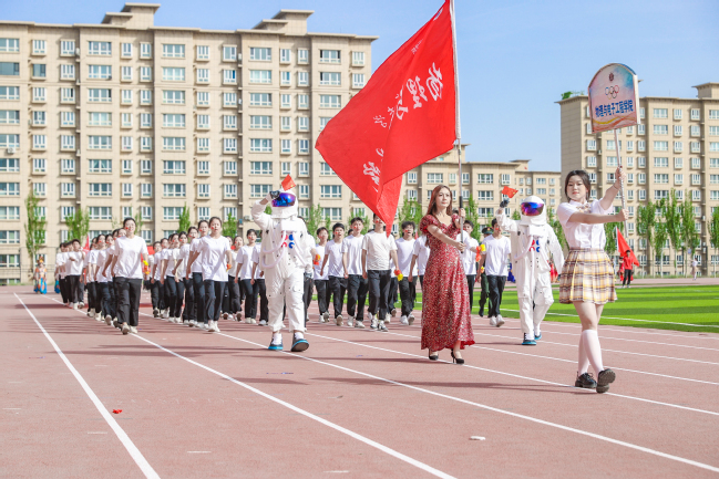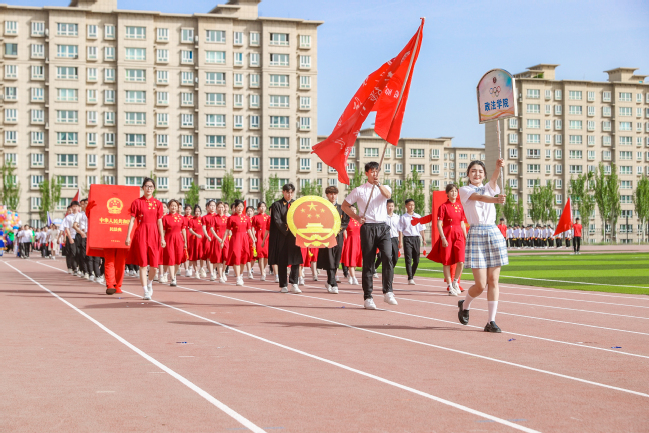 在激昂的音乐声中,国旗方队、退役军人方队、红旗方队、裁判员方队、研究生代表队和各学院代表队身着统一服装、迈着整齐步伐、高喊嘹亮口号通过主席台,接受在场师生的检阅。特色展示环节,各方阵或载歌载舞,或情景再现,或放飞白鸽,或展示标本,创意连连、精彩无限,展现了青年大学生朝气蓬勃、昂扬向上、奋发有为的精神面貌,赢得了在场师生的阵阵掌声。