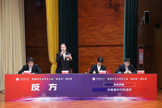 决赛现场,双方以“内卷是时代的进步/退步”为主题展开了一场思维的较量。双方辩手从现实出发,旁征博引,结合实际生活案例与具体数据,将自身专业知识同辩论技巧完美融合,用严谨和生动的语言为我们深刻剖析内卷的本质,从多个角度带我们认识当今时代下内卷现象的复杂性和多样性,更启发了我们作为时代青年,应树立正确的价值观念,将个人梦想与国家时代命运紧密相连,以积极的态度和正确的策略应对挑战,成为时代的奋斗者和梦想的实现者,为实现中华民族伟大复兴贡献青春力量。双方辩手的精彩表现赢得了现场观众的阵阵掌声和喝彩。经过紧张激烈的角逐,经现场评委评议,政法学院获得了本届“桃李杯”辩论赛冠军。