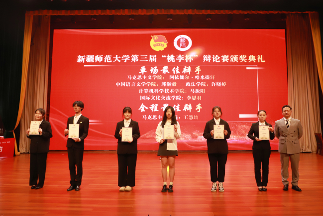 在本届“桃李杯”辩论赛中,马克思主义学院荣获亚军,中国语言文学学院荣获季军,国际文化交流学院摘得第四名。教育科学学院、中国语言文学学院、历史与社会学院、心理学院、体育学院、音乐学院获得优秀组织奖。来自马克思主义学院的王慧堉同学凭借其卓越表现,赢得了“全程最佳辩手”的荣誉称号;马克思主义学院阿依娜尔·哈米提汗、中国语言文学学院邱瀚毅、政法学院许晓婷、计算机科学技术学院马振阳、国际文化交流学院李思羽5位同学荣获“最佳辩手”称号。经过全校师生网络投票评选,商学院辩论队斩获最佳人气团队奖;中国语言文学学院邱瀚毅和物理与电子工程学院赵艳来同学获得“最佳人气辩手”称号。