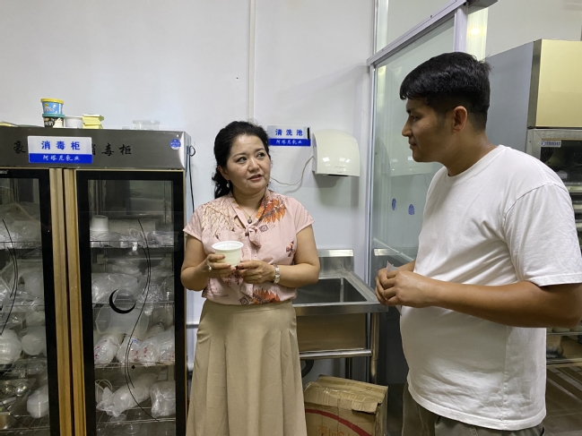 努尔古丽·热合曼教授对酸奶制作过程进行指导
