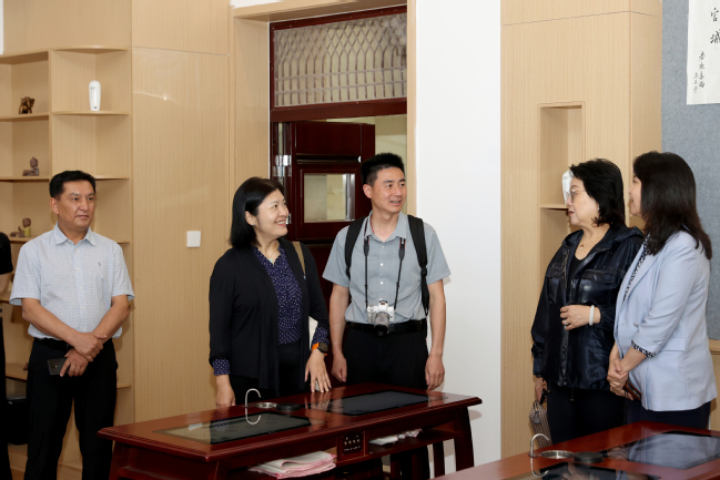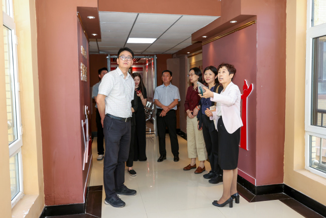 在马克思主义理论教育基地和孙秀玲名师工作室,调研组一行先后参观了思想之旗领航向、人间正道开新篇、初心砥柱天地间、宏阔格局向复兴、治疆方略谱新篇五部分的展示内容,感受百年大党的发展历程,领会了习近平新时代中国特色社会主义思想的精神实质和丰富内涵。