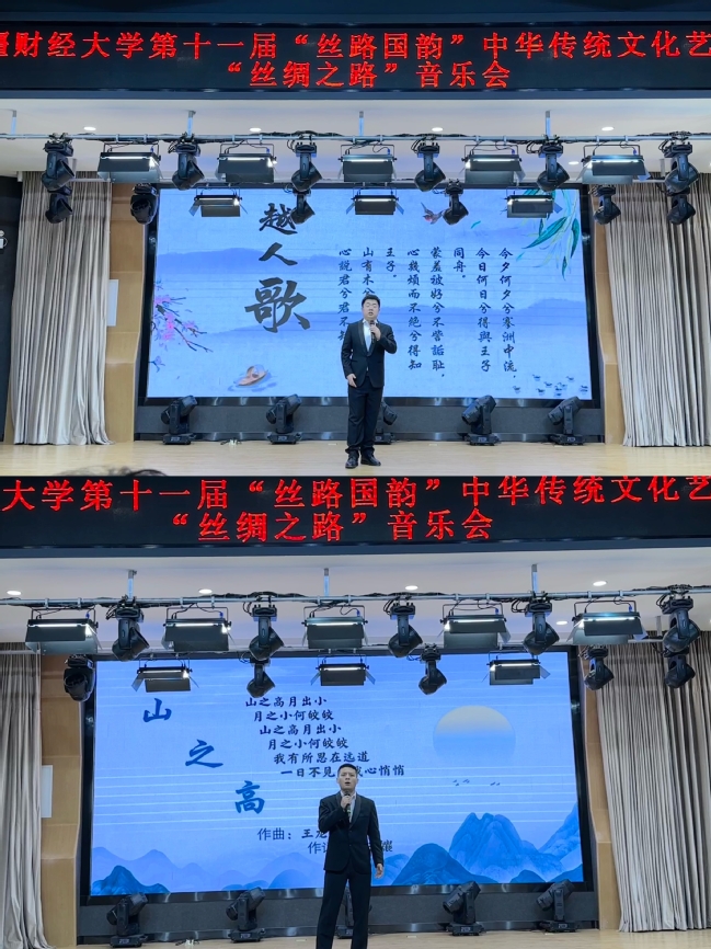 参观结束后,正值新疆财经大学举办中华传统文化艺术节之“丝绸之路”音乐会。玩滚官网音乐学院的同学们演唱了两首古诗词《山之高》《越人歌》,将古诗词以音乐的形式展示,令在场的新疆财经大学师生们耳目一新,震撼全场。