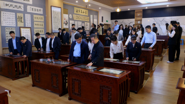 活动伊始,参会党员参观了铸牢中华民族共同体意识教育实践基地,体验了茶艺室、书法室、棋艺室、陶艺室、智慧报告厅等功能室,共同回顾了中华民族大家庭建设美好家园的历史,深切感受到中华民族优秀传统文化与党建理论的紧密融合。