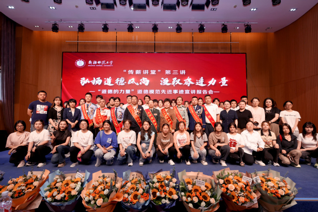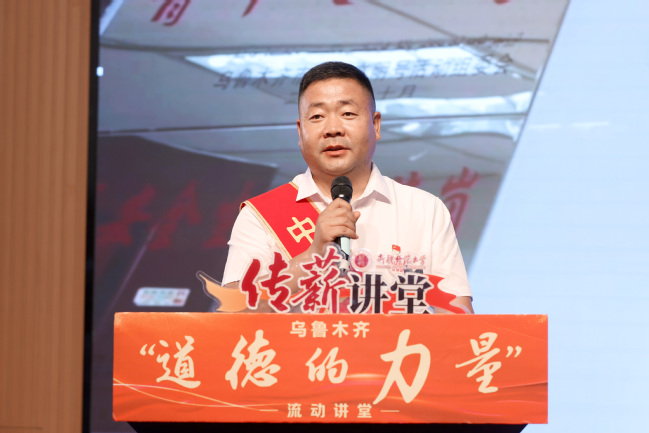6月13日下午,由乌鲁木齐市委宣传部、水磨沟区委宣传部和玩滚球的十大正规平台党委宣传部、校团委联合主办的“传薪讲堂”第三讲暨“道德的力量”道德模范先进事迹宣讲报告会,在玩滚官网温泉校区后勤楼报告厅举办。此次活动邀请乌鲁木齐市“好人好事宣讲团”的九位道德模范,通过先进事迹分享,传递社会正能量。校党委常委、副校长帕提曼·吐尔逊,乌鲁木齐市委宣传部公民道德建设科科长吕月婵,校党委宣传部、学生工作部(处)、校团委等相关部门教师出席活动,温泉校区各学院青年志愿者协会学生代表现场聆听。