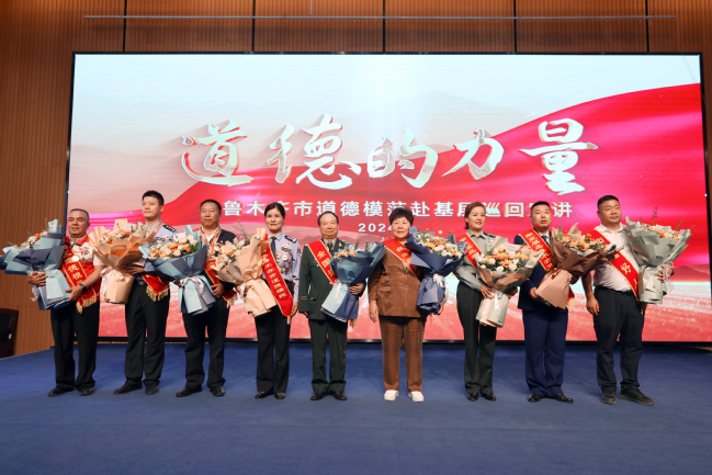 中国好人、自治区助人为乐道德模范王永强创立博峰小兵志愿队,发起“公益宝贝圆梦计划”项目,共帮助1200余名各民族学生圆梦,为困境家庭学生累计发放助学金30余万元;自治区岗位学雷锋标兵、乌鲁木齐市助人为乐道德模范朱中华,19岁时勇救落水者,十几年如一日地帮助他人,发起成立“新疆阳光爱心公益社”,组织公益活动近200场;全国消防忠诚卫士、乌鲁木齐市敬业奉献道德模范李建伟是一名英雄消防员,先后参与各类救援6200余次,成功营救遇险遇难群众750多人,被战友们称为火场上的“定海神针”;全国人民满意公务员、乌鲁木齐市敬业奉献道德模范热孜婉古丽·吐尔逊是一名派出所民警,扎根基层做到“矛盾不上交、平安不出事、服务不缺位”,将辖区群众的矛盾化解在萌芽阶段;乌鲁木齐市道德模范赵欣华是一名军医,从医30余年,奔赴救援现场、下基层、走边防是工作常态,她时刻守护着官兵健康、为部队战斗力护航。