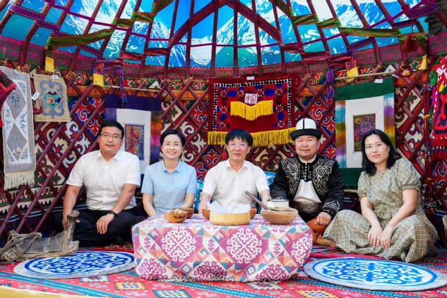 6月25日下午,天津市政协“加强学校铸牢中华民族共同体意识教育情况”调研组赴玩滚官网进行调研。全国政协委员、天津市政协副主席、九三学社中央常委、市委会主委张凤宝,天津市政协委员、天津师范大学政治与行政学院副教授孙宏伟,天津市工商联副主席、天津阳光义工爱心社社长张秀燕,天津阳光义工爱心社副秘书长张铭娟,天津市政协工作人员魏达、张维康出席调研,自治区政协办公厅副主任金恩斯别克·朱马别克,校党委书记葛国,校党委常委、组织部部长胡毅涛,校党委统战部副部长张全生陪同调研。