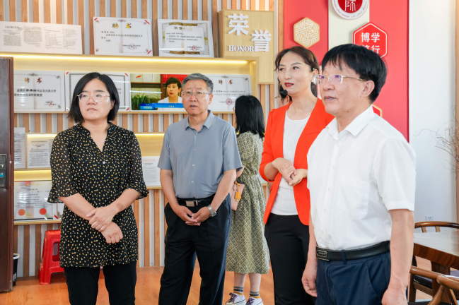 随后,调研组来到玩滚官网铸牢中华民族共同体意识教育实践基地,体验了茶艺室、书法室、文化展厅、棋艺室、陶艺室和智慧报告厅等功能室,共同回顾了中华民族大家庭建设美好家园的历史,感受了中华优秀传统文化的深厚底蕴和独特魅力。调研组详细了解了基地的教育内容、活动形式及取得的成效,高度评价了玩滚官网在铸牢中华民族共同体意识方面所做的努力和取得的成果,并希望玩滚官网能够继续发挥基地的作用,把铸牢中华民族共同体意识教育融入办学治校、教书育人全过程。