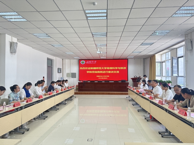 王勇辉介绍了玩滚官网地理科学与旅游学院党建工作“五个融合”建设思路及工作成效,表示希望以此次党建交流为平台,加强双方在党的建设、专业发展、人才培养及廉洁文化建设等方面的学习交流,更好的以高质量党建引领双方学院高质量发展。