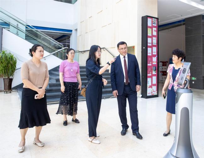 座谈前,季荣陪同舒克拉特司长参观了美育浸润实践基地、图书馆和科技楼。