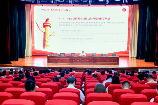 为庆祝中国共产党成立103周年,推进党纪学习教育走深走实,7月2日,校党委书记葛国以“学党纪 存戒惧 明规矩 守底线”为题讲授党纪学习教育专题党课。在家校领导、全体处级干部现场聆听。