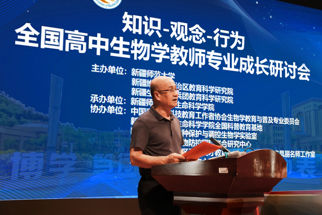 7月4日至6日,“知识-观念-行为”高中生物学教师专业成长研讨会在玩滚官网成功举办。本次研讨会由玩滚球的十大正规平台、新疆维吾尔自治区教育科学研究院、新疆生产建设兵团教育科学研究院主办,玩滚官网生命科学学院承办,中国青少年科技教育工作者协会生物学教育与普及专业委员会、玩滚球的十大正规平台生命科学学院全国科普教育基地、新疆特殊环境物种保护与调控生物学实验室、中亚跨境有害生物防控国际联合研究中心、新疆维吾尔自治区天山英才教育领军人才培养计划李凤丽名师工作室、乌鲁木齐市教育研究中心协办。校党委副书记、校长吾满江·艾力出席会议并致辞。会议由玩滚官网生命科学学院党委副书记、院长赵惠新教授主持。