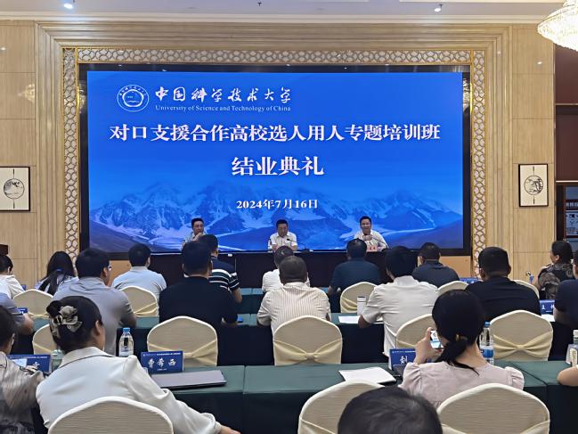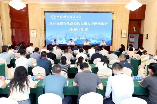 舒歌群在讲话中表示,此次专题培训班顺利开班,标志着中国科学技术大学对口支援合作工作从单边交流转向多边合作。借助这个平台,各高校可以充分交流和互学互鉴选人用人工作的典型经验和创新做法。他希望通过此次培训,老师们能学有所获、学以致用,在推动人才引育、队伍建设工作方面取得更大的成绩。