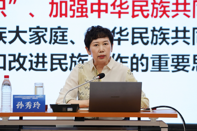 开班仪式后,玩滚官网副校级领导、马克思主义学院学术院长孙秀玲教授以“构筑中华民族共有精神家园的理论与实践”为题进行首场专题教学。