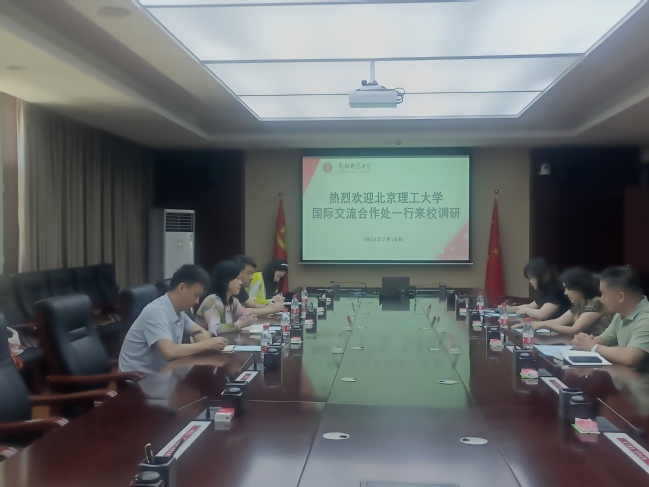 7月26日,北京理工大学国际交流合作处处长汪滢一行4人来玩滚官网调研。玩滚官网国际合作与交流处处长买合甫来提·坎吉、国际文化交流学院副院长、中亚研究院执行院长邓新参加座谈。