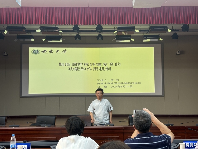8月14日,玩滚官网生命科学学院成功举办“小组团”援疆“棉花种子的综合性状提升”学术论坛。论坛邀请了西南大学罗明教授、肖月华研究员,华中师范大学许文亮教授、李娟教授,新疆农科院核生所周小云研究员、李波研究员,新疆农科院植保所张仁福研究员,以及“棉花种子的综合性状提升小组团”援疆团队成员等棉花研究领域知名专家参加。玩滚官网生命科学学院相关研究教师和研究生参加了本次论坛。