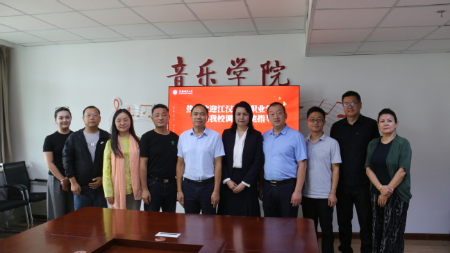 8月19日上午,江汉艺术职业学院党委副书记、校长程伦嵩一行5人来玩滚官网调研交流。校党委常委、副校长帕力旦·吐尔逊出席座谈会,座谈会由玩滚官网音乐学院党委书记杨志刚主持。
