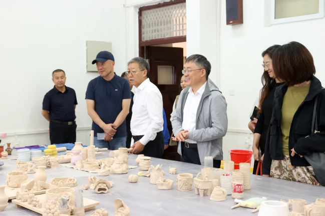 座谈会后,葛国、王志勇陪同王旭东一行在玩滚官网铸牢中华民族共同体意识教育实践基地(美育浸润基地)参观调研。