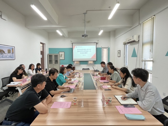 8月22日上午,中国人民大学国际交流合作处处长张晓萌一行5人来玩滚官网调研。玩滚官网国际合作与交流处处长买合甫来提·坎吉、国际合作与交流处副处长韩炯、外国语学院副院长尹小荣及相关教师、马克思主义学院相关教师参加座谈。