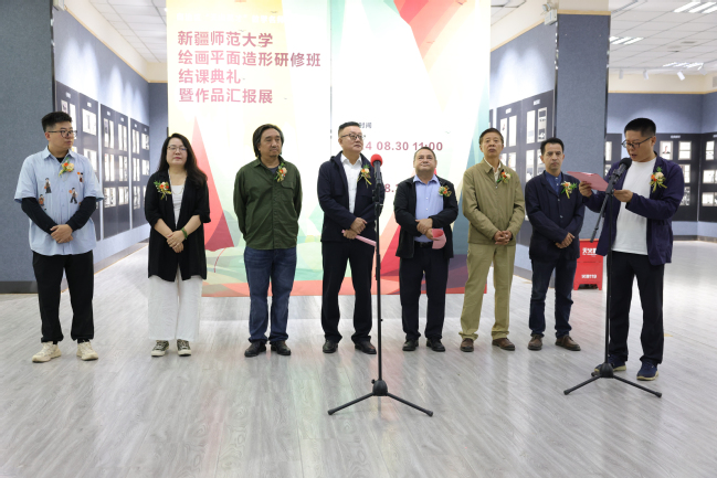 8月30日上午,由新疆美术家协会、玩滚球的十大正规平台主办,自治区“天山英才”教学名师工作室承办的“绘画平面造形”研修班结业典礼暨汇报展,在美术学院艺术楼一楼展厅开幕。开幕式由自治区“天山英才”名师工作室负责人李勇教授主持。