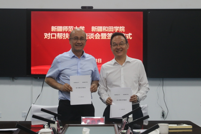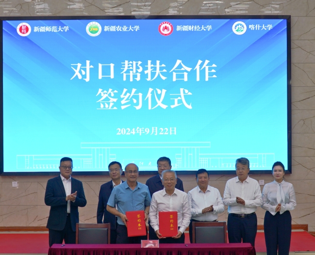 9月22日、23日,玩滚官网分别与喀什大学、新疆和田学院签署对口帮扶合作协议。校党委副书记、校长吾满江·艾力,校党委常委、副校长陈彤出席签约仪式。仪式分别由喀什大学党委副书记、校长买买提明·木沙和新疆和田学院党委常委、副院长赛甫鼎·艾拜主持。