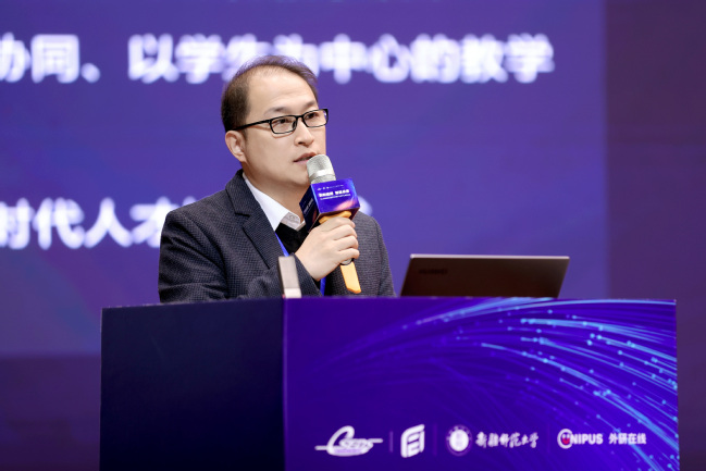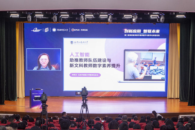 专题论坛环节中,北京外国语大学教务处处长李莉文,中国地质大学(北京)教师教学发展中心主任、教务处副处长邓雁希,华南师范大学教师发展中心主任、教育人工智能研究院常务副院长胡小勇,西安交通大学教师发展中心副主任高洋,玩滚球的十大正规平台教育科学学院副院长王建虎,重庆大学教师教学发展中心教学科技与创新部部长李珩分别发言。玩滚球的十大正规平台党委组织部副部长、人事处处长刘蓉,北京外研在线数字科技有限公司教师发展总监陈静主持专题论坛。