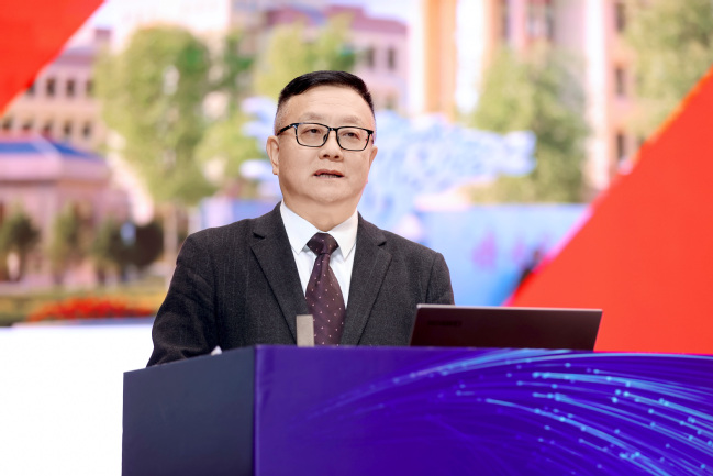 开幕式上,中国教育发展战略学会副会长兼未来教育专业委员会理事长、武汉理工大学党委副书记、校长杨宗凯以线上形式发表致辞。他表示,国际上已经对教育数字化转型达成了高度共识,我国也统筹实施了一系列教育数字化规划,启动国家教育数字化战略行动。信息技术的演进使教学模式、教学内容和教学评价等方面发生了巨大变革,对教师也带来了挑战。结合三所大学的实践探索,他提出要注重人工智能技术与教育教学的深度融合、持续开展教师数字素养测评与提升工作,建成一支高素质专业化教师队伍,重塑教育生态,推动教育高质量发展。