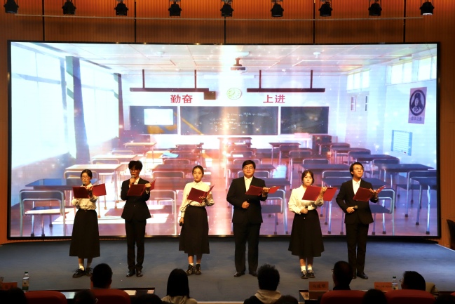 活动中,大学生艺术团带来诗朗诵《灯塔》,代表广大学子,向倾心付出、无私奉献的老师们表示衷心的感谢和美好的祝福。访谈结束后,学生代表向两位嘉宾教师献花致意。