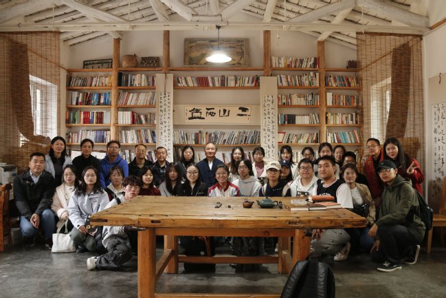 中国语言文学学院卓越师范生、导师代表、班主任与刘亮程先生合影留念