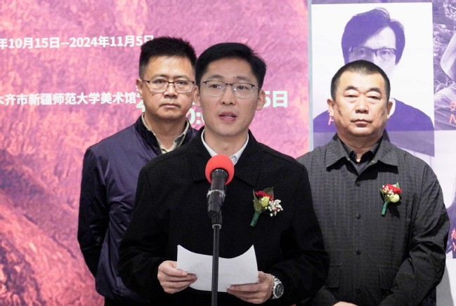 高靖在致辞中表示,此次展览是河北传媒美术与设计学院与新疆等地艺术机构的深度合作的最新成果,是深入开展“文化润疆”工程的最新实践,有力推动了两地文化交流,向公众展示了艺术创作的丰硕成果,充分展现了新时代新疆的风土人情和边疆风貌。