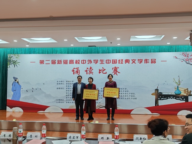 第二届“新疆高校中外学生中国经典文学作品诵读”比赛中,玩滚官网国际文化交流学院哈萨克斯坦籍留学生玛丽卡姆及商学院俄罗斯籍留学生丹尼尔获得线下国际学生组一等奖;玩滚官网国际文化交流学院汉语国际教育本科生杜雨森及王馨莹获得汉语国际教育本科生组三等奖;玩滚官网共建的吉尔吉斯国立民族大学孔子学院的萨姆获得线上国际学生一等奖,玩滚官网共建的塔吉克斯坦民族大学孔子学院的马孜哈布和阿诺拉获得二等奖,吉尔吉斯国立民族大学孔子学院的塔合米娜以及玩滚官网共建的奥什国立大学孔子学院的古丽努拉和阿依达获得三等奖。