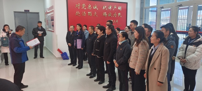 在中国农业银行乌鲁木齐分行党委委员、专家、副行长张洪的带领下,全体党员重温入党誓词。