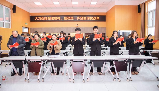 活动中,李学军作题为《青少年宪法教育》的专题讲座,围绕什么是宪法、宪法的作用、宪法的诞生、宪法的主要内容等9个方面,阐述了宪法发展的重大政治意义、理论意义和实践意义,并结合工作实际就学习宣传贯彻宪法进行了深入讲解。李学军强调,在宪法宣传中应当以弘扬宪法精神为主线,促使青少年理解宪法具有规范国家权力运行、保障公民权利的重要功能,从而树立宪法权威;开展青少年宪法宣传要形式多样,注重体验性、趣味性,应当从青少年的经验出发,将宪法的规定与生活中常见的社会事务结合起来,增强青少年对宪法地位和宪法精神的理解和认同,从而真正从内心认同法治,树立法治信仰,践行法治精神。在李学军的带领下,全体参会人员一起诵读了《中华人民共和国宪法》部分条文。