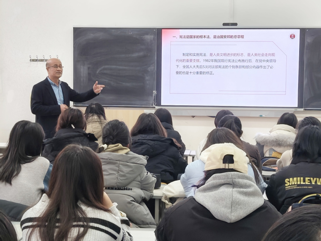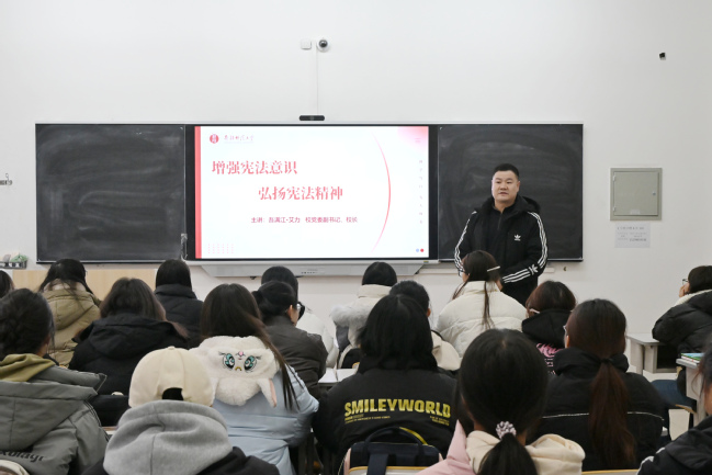 12月9日,校党委副书记、校长吾满江·艾力深入“三进两联一交友”联系班级——玩滚官网教育科学学院小学教育2024-3班,在温泉校区2号教学楼110教室讲授题为《增强宪法意识,弘扬宪法精神》的专题课程。
