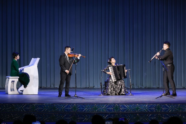 本次音乐会由玩滚官网音乐学院的师生演奏了16首风格各异的曲目,涵盖国内外经典之作。通过手风琴独奏、重奏,以及手风琴与多种乐器协作演奏等形式,展示了《玛依拉》《春到帕米尔牧场》《青春舞曲》等多首经典作品。此外,还演奏了《致意华尔兹》《安娜探戈》《吉尔拉舞曲》等音乐作品。音乐会在张新化任指挥的手风琴乐团合奏《我和我的祖国》中落下帷幕。
