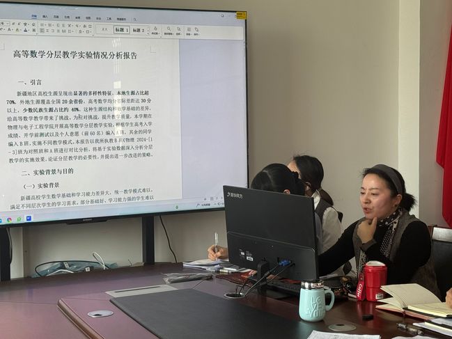 承担本次教改任务的教师代表卢维娜老师和王爽老师以详实的数据和案例介绍了高等数学高阶班在教学理念、教学内容、教学方法、教学手段、教学评价等方面实施的教学改革,并从情感能力、高阶思维及期末考试成绩等维度对改革成效进行了汇报。汇报结束后,全院教师对改革细节、面对的挑战以及下一步改革的径向开展了深入而热烈的讨论。