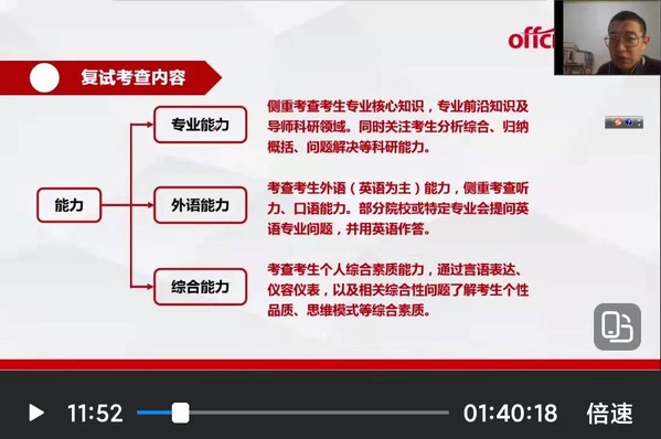 本次专题培训特邀请第三方培训机构,依托专业化力量开展培训。专升本考前培训既围绕政治、语文科目进行了备考指导,解读了考试大纲,对题型进行了详解,还针对考题多样化的特点,强调要注重提升文本阅读能力与语言综合表达能力。研究生复试及专业调剂培训从复试趋势、备考要点分析、复试流程、注意事项、线上复试真题、各专业调剂指导、院校推荐、调剂系统如何使用等内容进行了讲解。